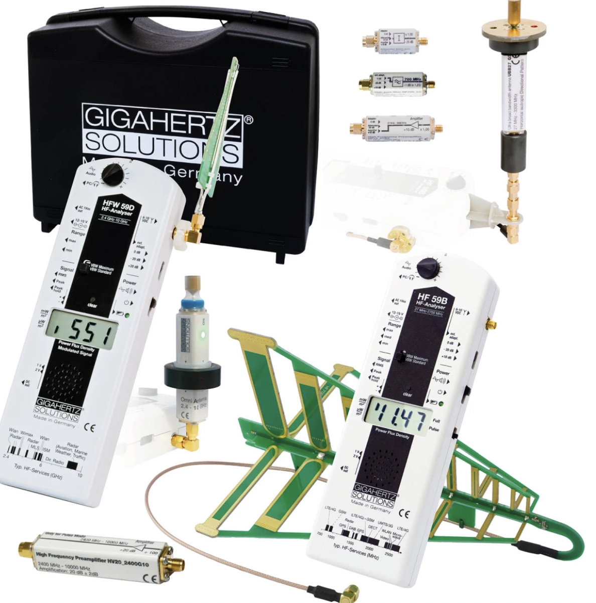 Medimos campos electromagnéticos de alta frecuencia tales como emanan de la radiotransmisión clásica (análoga) así como campos electromagnéticos de alta frecuencia pulsadas tales como emanan de la tecnología de radiotransmisión digital, especialmente de los celulares, teléfonos fijos inalámbricos nuevos, wifi y bluetooth. Estos últimos son muy innatural y dañinos (vea: Causas enfermedades).